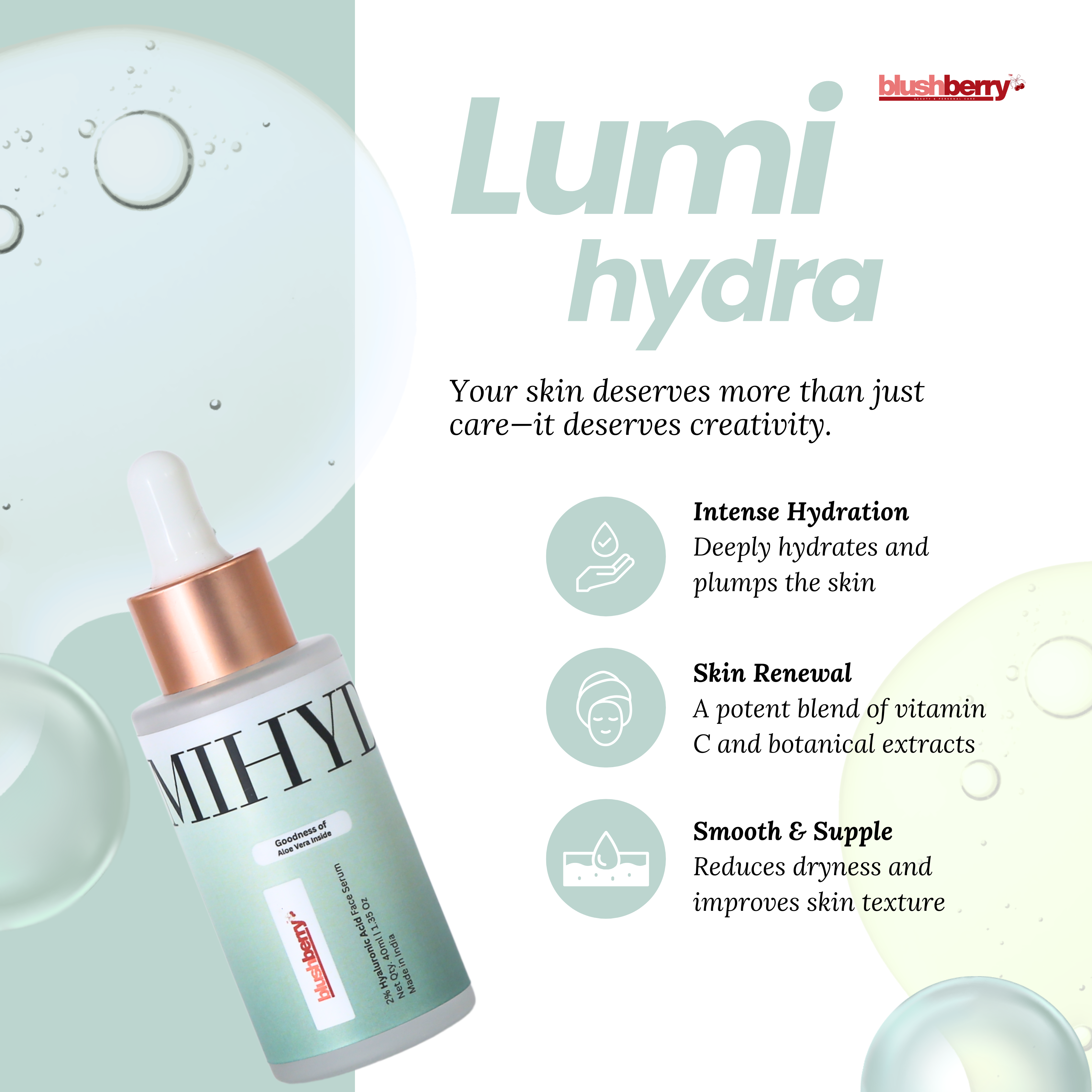 Lumihydra Hyaluronic Acid Serum delivers deep hydration and soothing care with Hyaluronic Acid, Aloe Vera, Panthenol, Niacinamide, and Centella Asiatica. Lightweight, calming, and barrier-friendly, it leaves your skin plump, radiant, and refreshed every day.